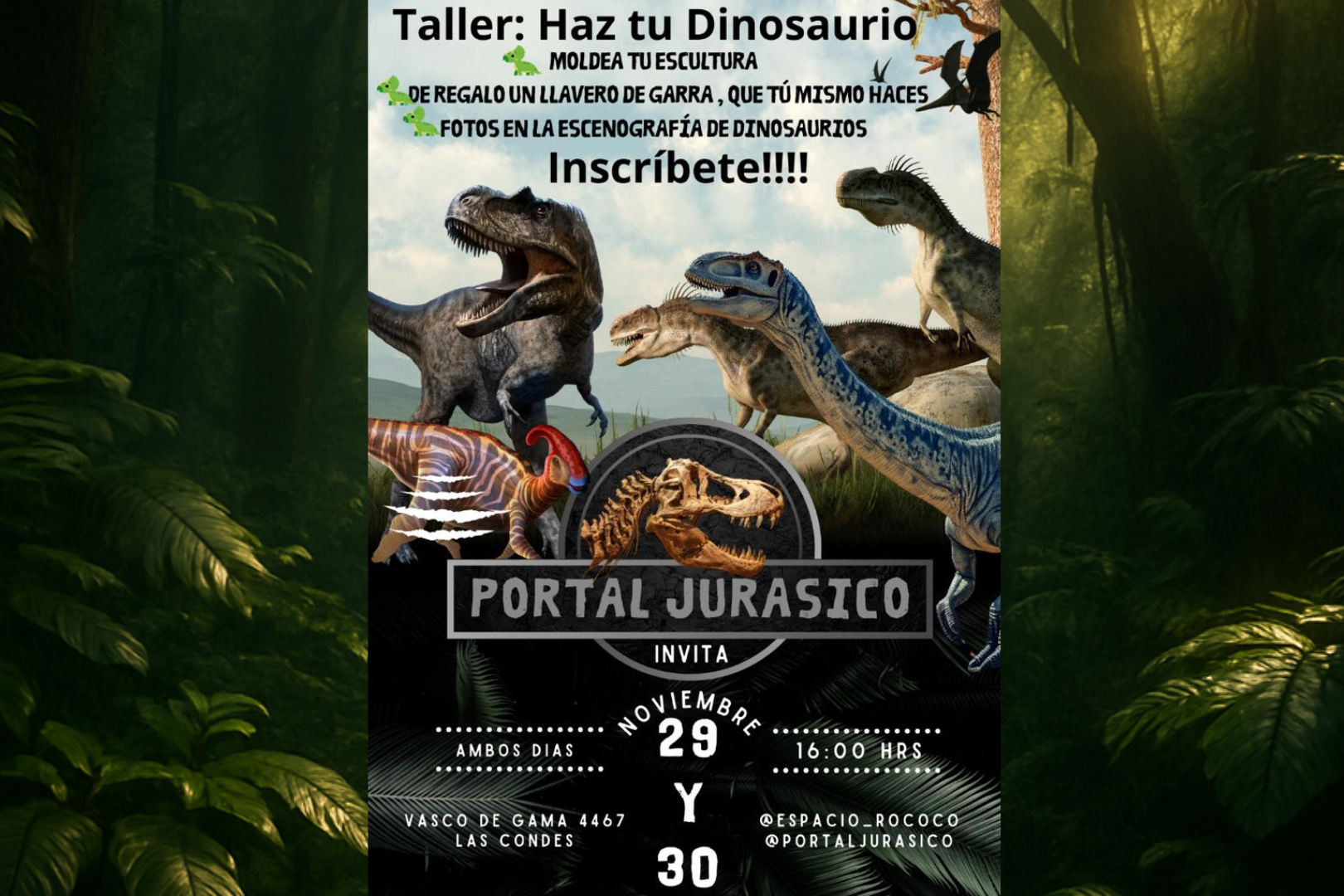 En Portal Jurásico te invitamos a un increíble Taller “Haz tu Dinosaurio”, donde podrás moldear tu propia escultura, crear tu propio llavero de garra y tomarte fotos épicas en una espectacular escenografía llena de dinosaurios 🦖🌿.