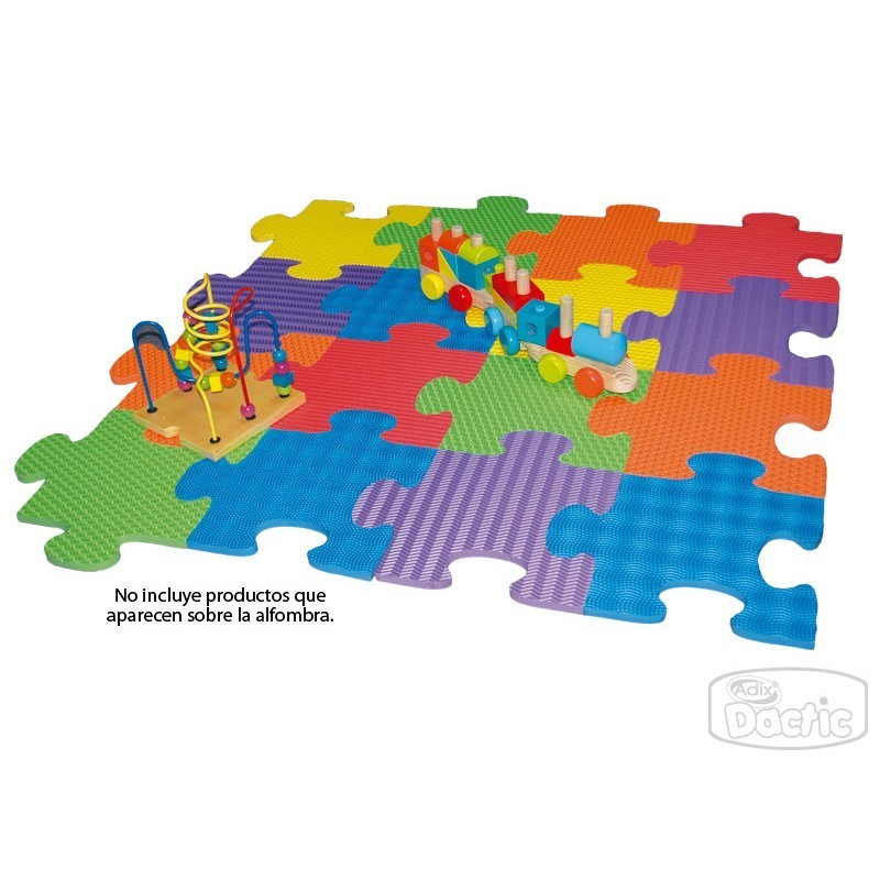 Alfombra de goma eva con texturas. Permite a los niños desarrollar la coordinación motriz, reconocer diferentes colores y texturas. Además de favorece el trabajo grupal con otros niños. Contiene 16 piezas de 29,5 x 29,5 cm aproximadamente. 1 mt2 armada. Recomendado para niños desde los 2 años.