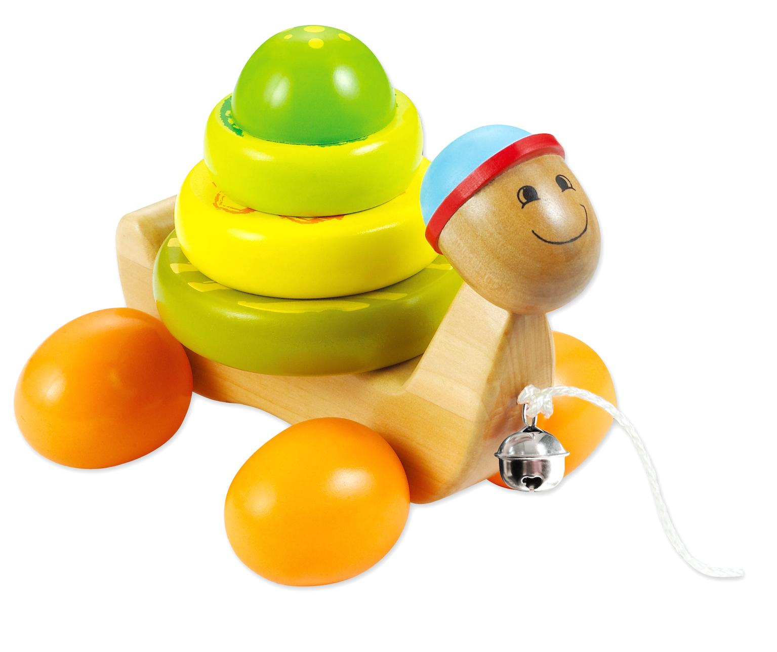 Arrastre de tortuga con encajes y una cuerda que permite trasladarlo produciendo sonido. Permite el desarrollo de la coordinación,la actividad física, la identificación de colores y el desarrollo de la motricidad fina.
