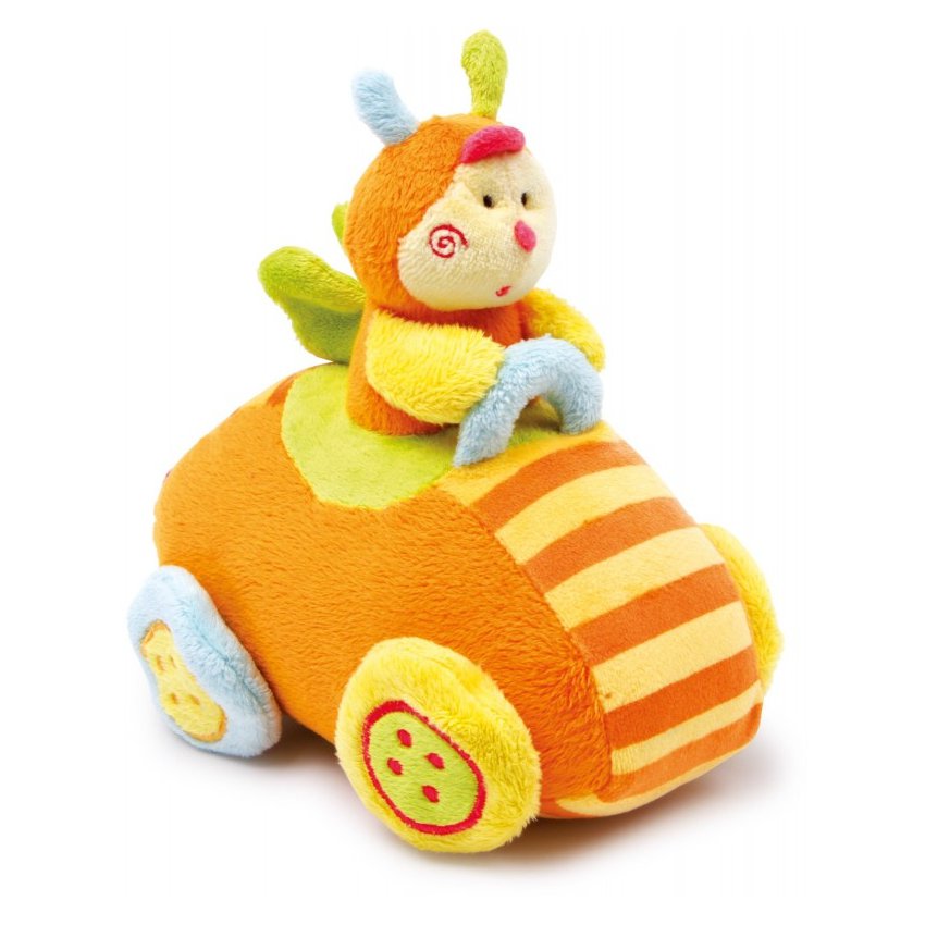 Maravilloso peluche compuesto por una abejita en su auto de transporte, Mucho encanto y estímulo sensorial por las texturas y colores hace de este peluche muy diferente al resto, dándole un encanto y estimulo visual adicional, Tanto para reconocer texturas, colores y formas es un gran aliado en el aprendizaje y estímulo sensorial temprano.