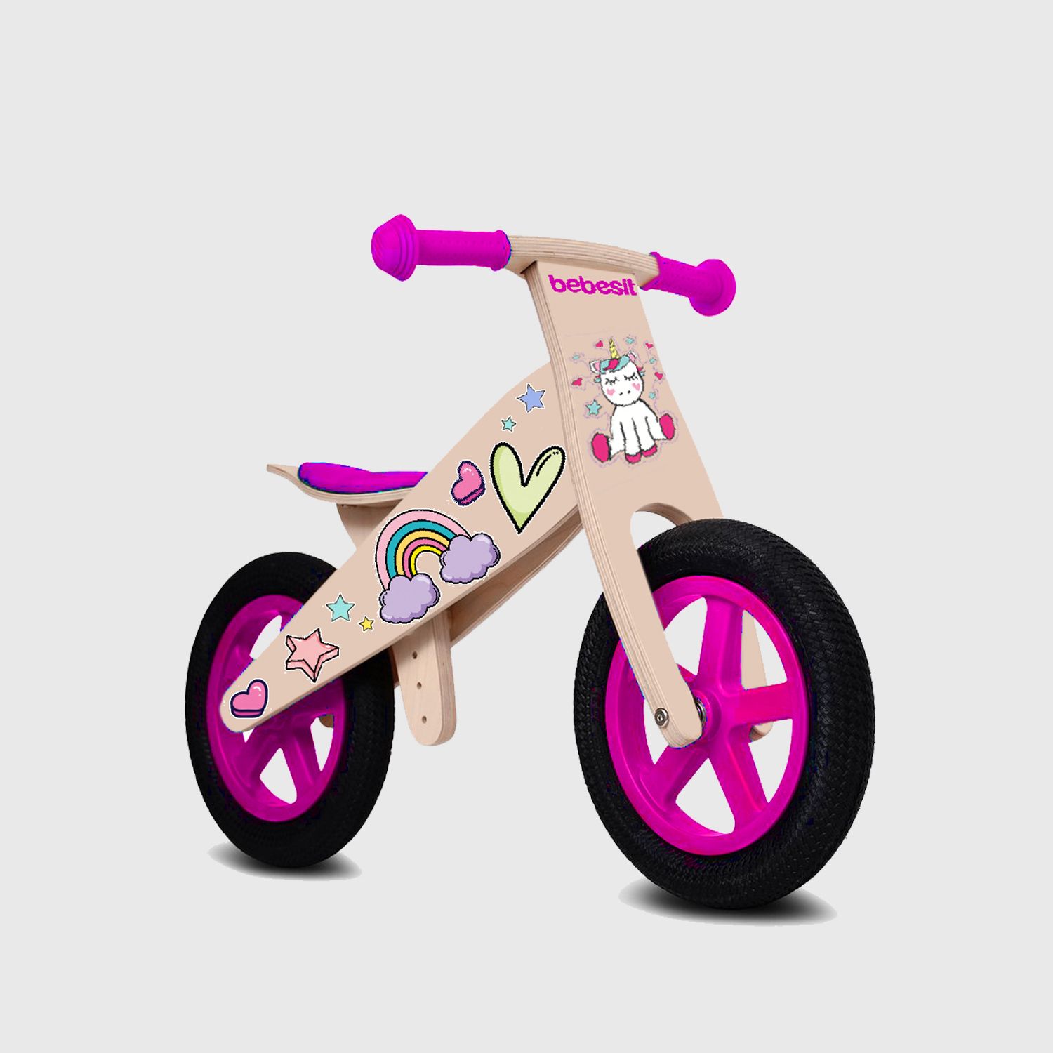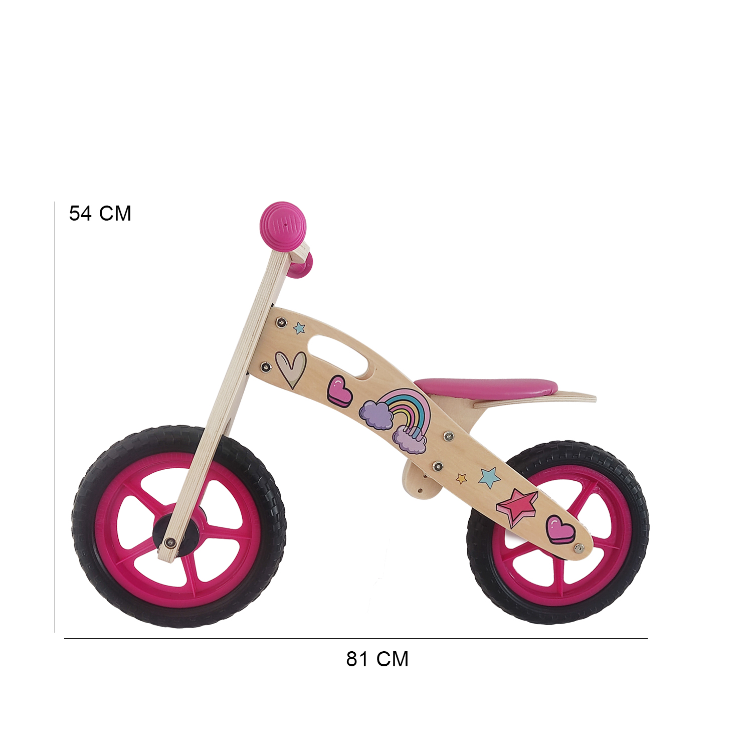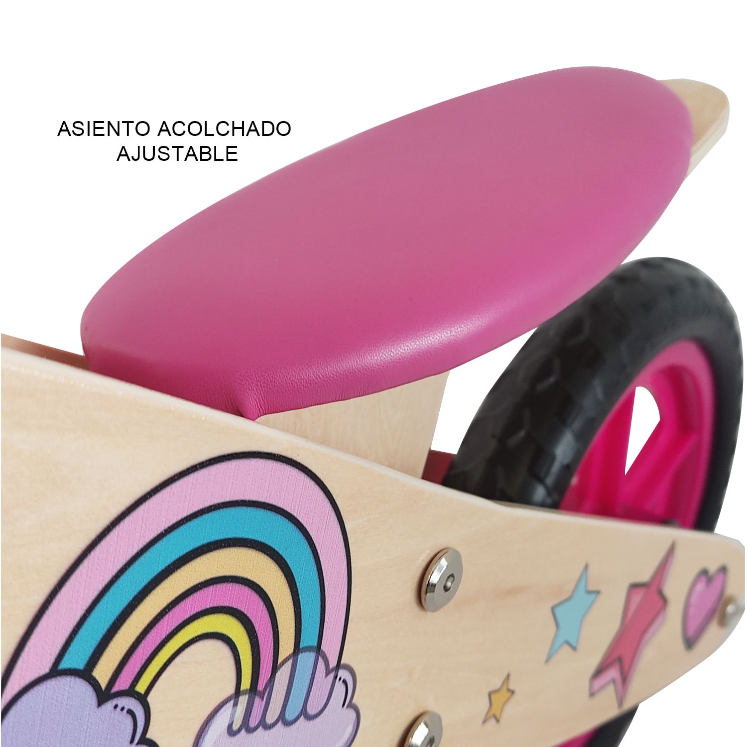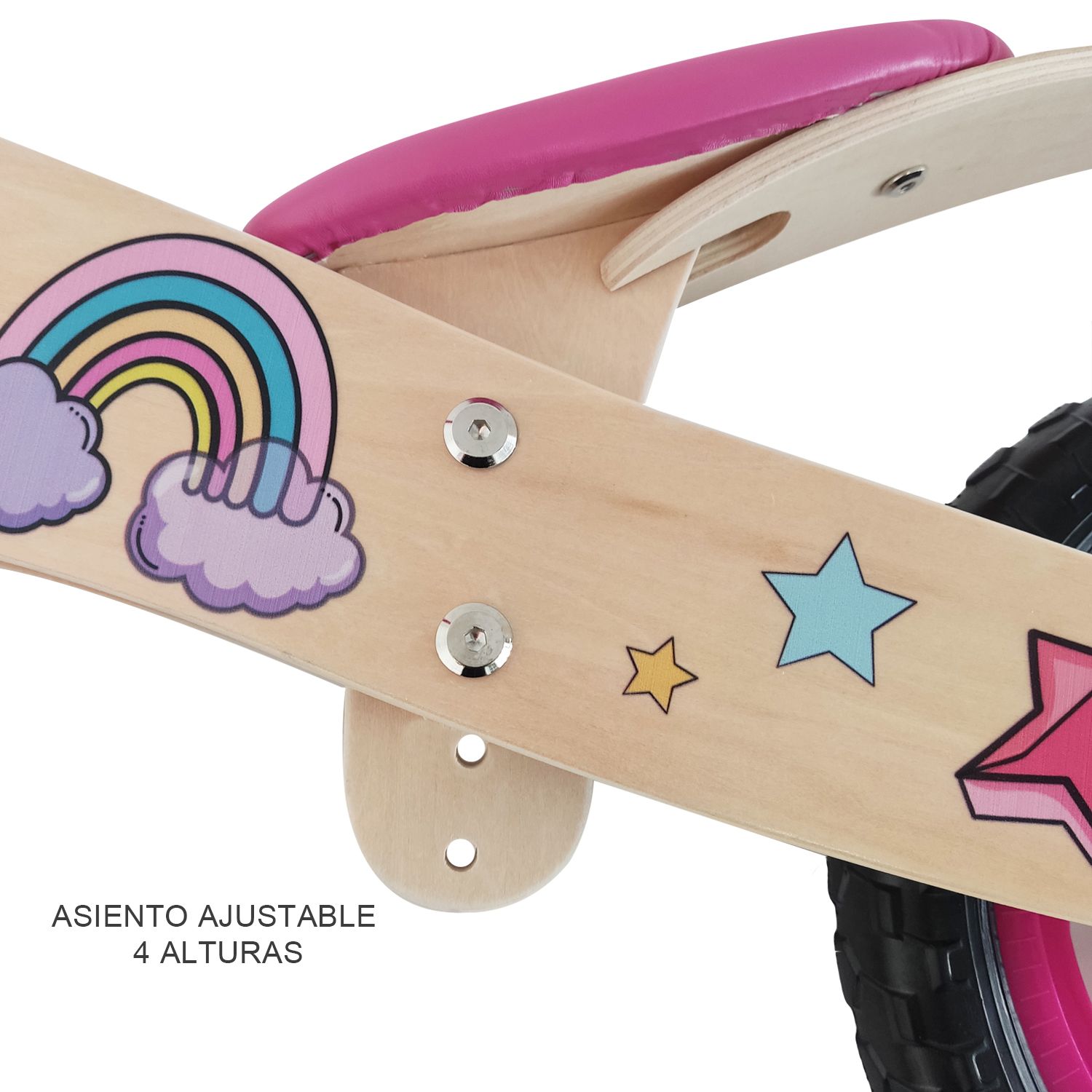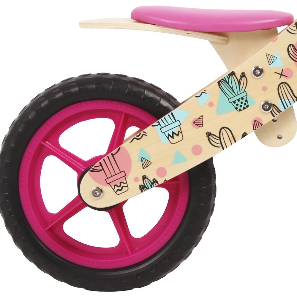 Bicicleta de equilibrio de madera de alto rendimiento, asiento acolchado y ajustable, tapabarros, puños de goma.