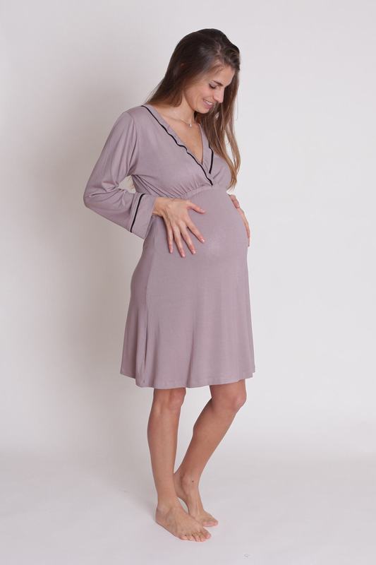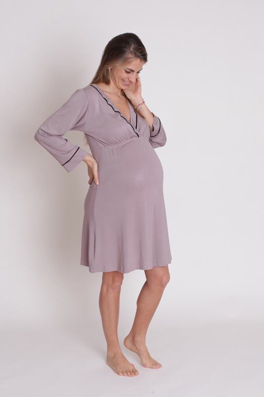 Camisa de dormir confeccionada especialmente para que pueda ser usada cómodamente desde el embarazo hasta el final de la lactancia.