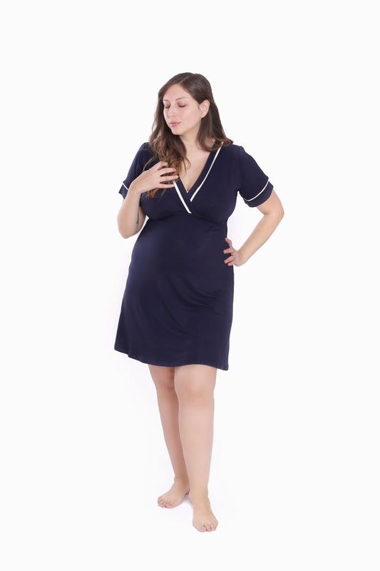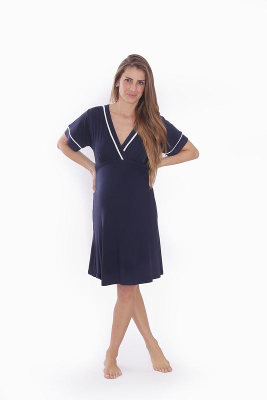 Camisa de dormir confeccionada especialmente para que pueda ser usada cómodamente desde el embarazo hasta el final de la lactancia.