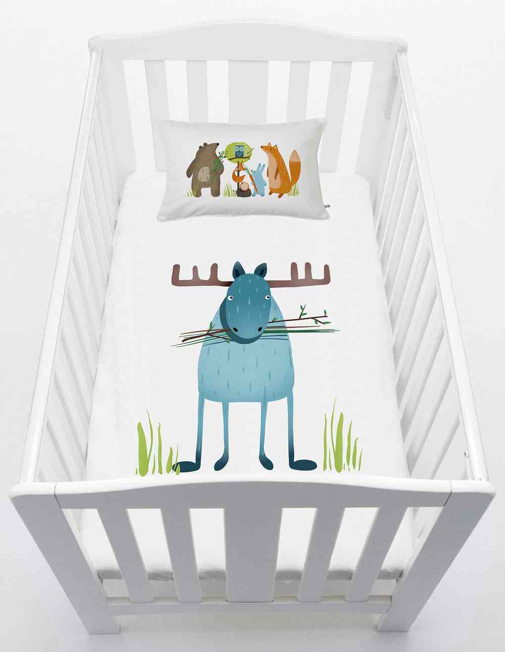 Cubreplumón Alce Azul, Sabanas Cuna, Ropa De Cuna, Cubreplumon Cuna, Cobertor Cuna, Set De Cuna