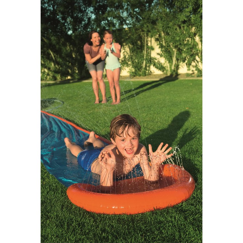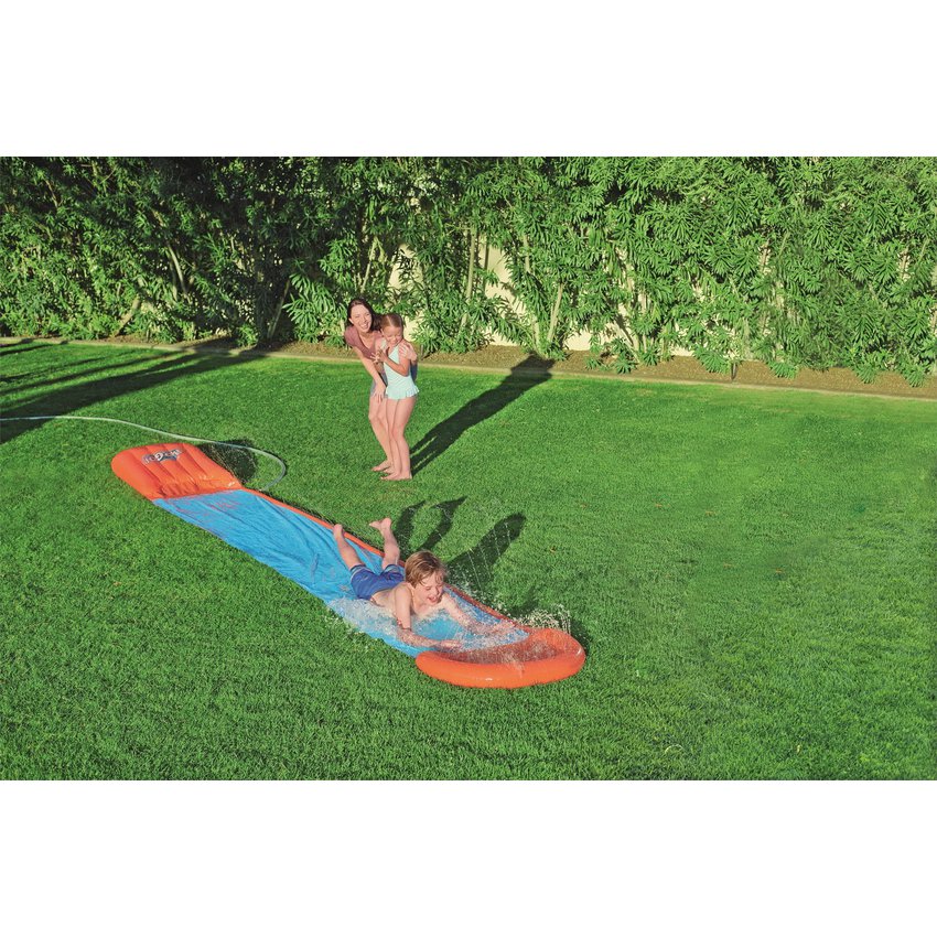 ¡El deslizador simple H2OGO!™ es un clásico que no puede faltar en tu jardín para un verano lleno de diversión! Es súper fácil de instalar: simplemente conéctalo a una manguera de jardín y empieza a deslizarte. Este deslizador de 533 cm de largo tiene una rampa de velocidad y una pequeña piscina en el otro extremo para un deslizamiento suave y rápido... ¡y un aterrizaje con chapuzón! Los peques desearán tener este fantástico deslizador en su jardín.