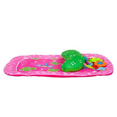 Incluye: Un suave cojín para que el bebé se apoye con facilidad, una mariposa, un juego de argollas y cascabel.