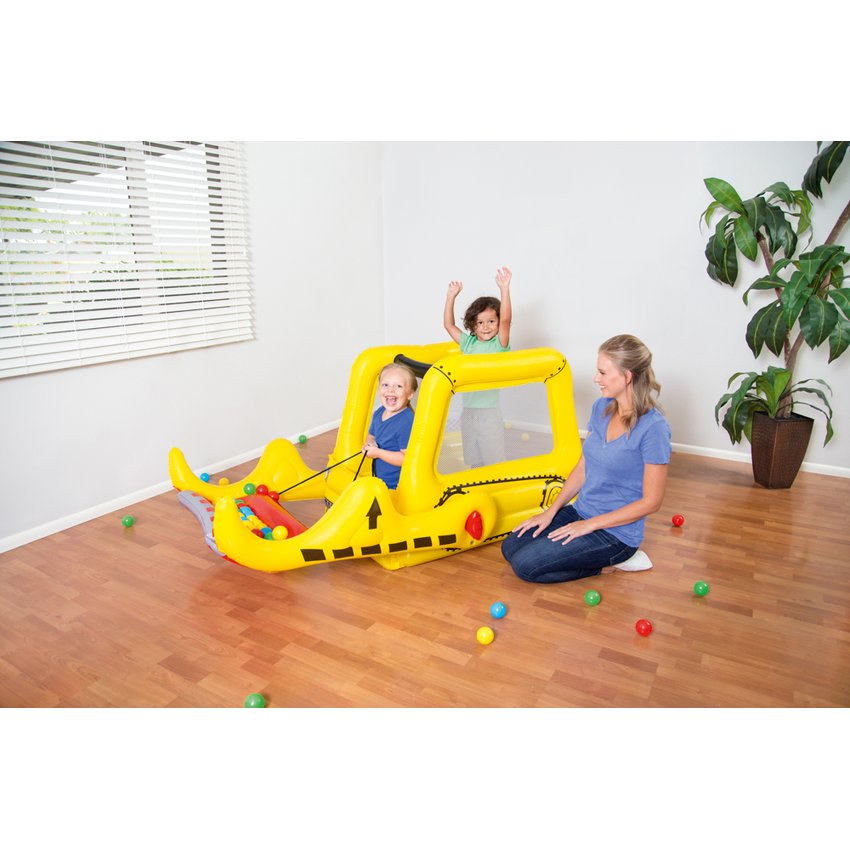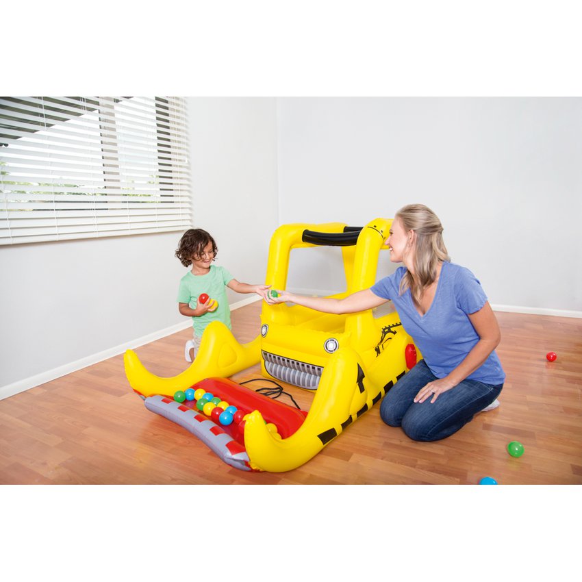 Esta Piscina de pelotas Inflable Bestway Camion, es perfecta para los peques a los que les encantan los camiones grandes y que sueñan con construir grandes cosas. Una cabina con paredes de malla para que los padres puedan ver a los peques se conecta a una pala cargadora inflable y móvil. Los peques pueden imitar los movimientos de una excavación real cargando la pala con las 25 bolas que vienen incluidas. La estructura está diseñada para que sea simple y duradera: se utiliza un cordón para mover la pala que está conectada a la cabina mediante un botón inflado (para que no haya posibilidad de rotura). Las válvulas de seguridad retienen el aire mientras los peques juegan y aceleran los procesos de inflado y desinflado