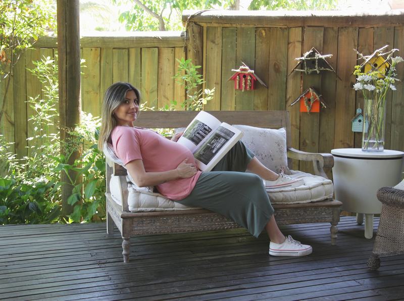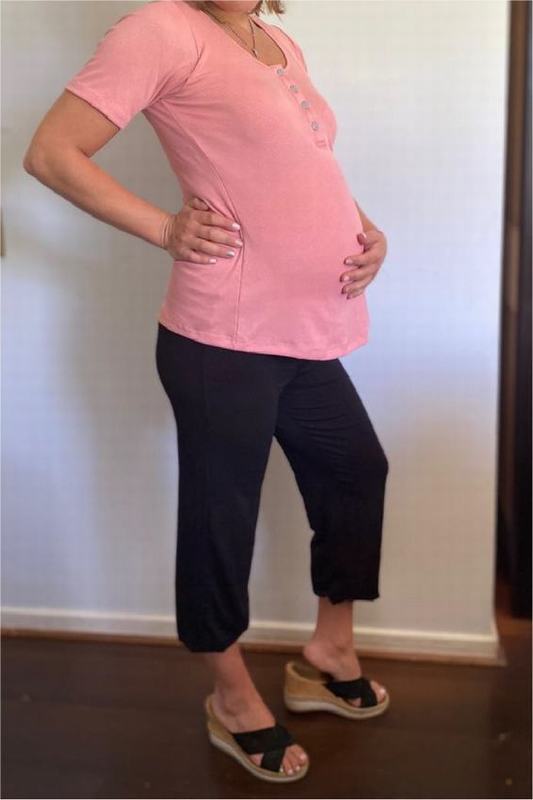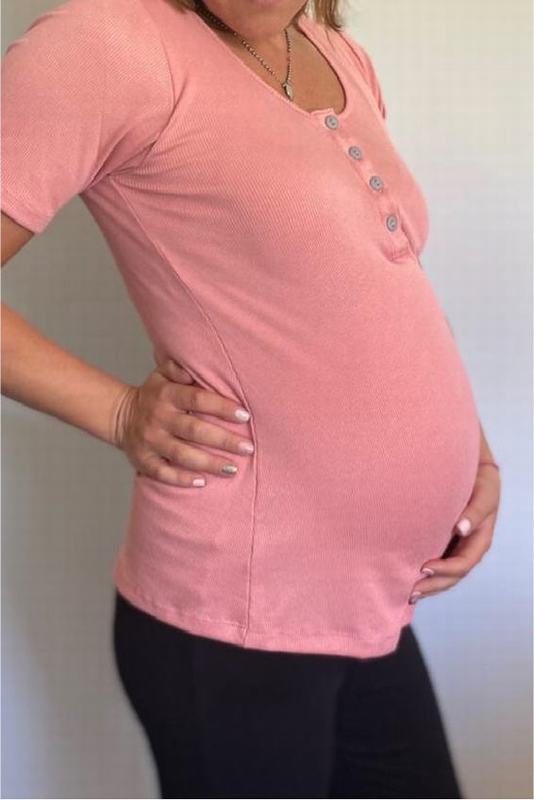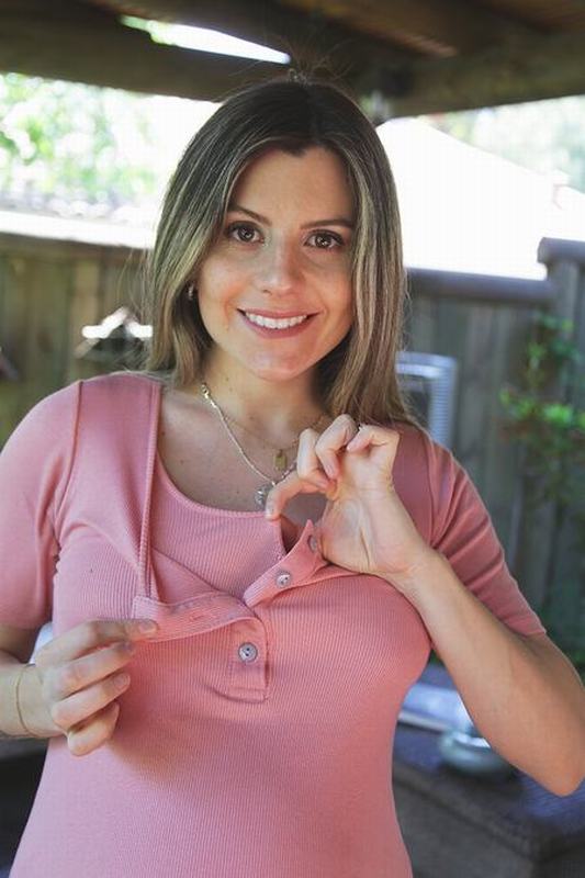 Polera manga corta con sostén incorporado que puedes usar cómodamente desde el embarazo hasta el final de la lactancia.