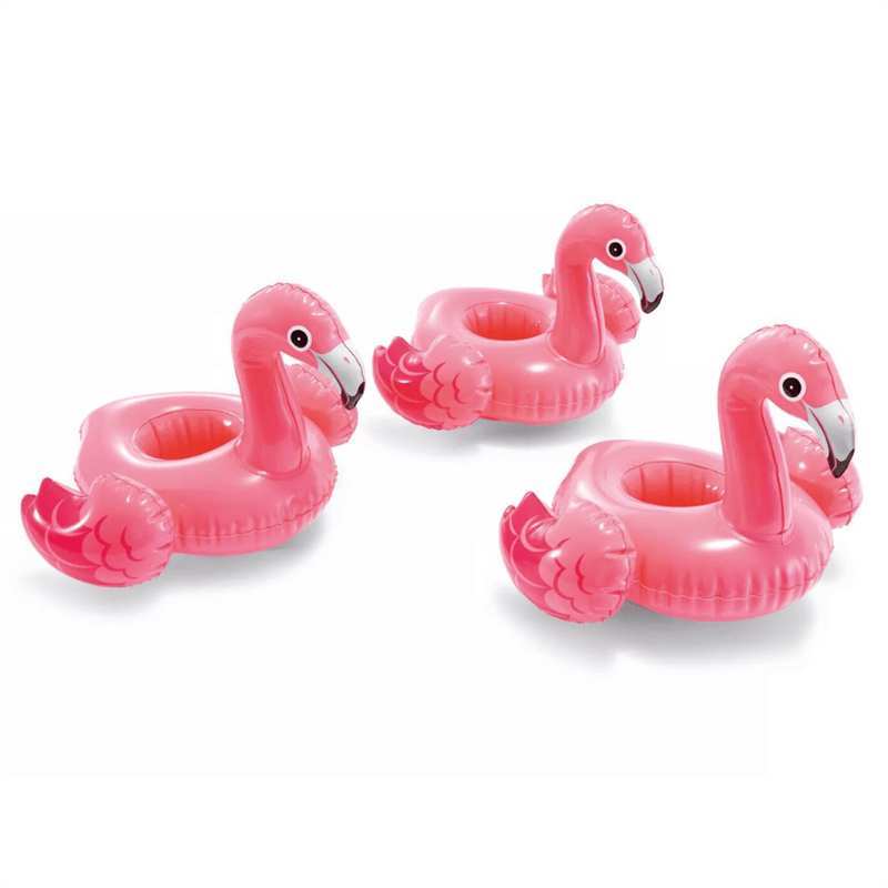 - Ahora hay una forma diferente y divertida de tomar refrescos en tu piscina, los posavasos Intex Flamingo Drink Holders con forma de Flamengo dejarán a todos tus invitados alucinados y no solo por su simpático diseño, sino porque son muy prácticos para utilizarlos en la piscina.