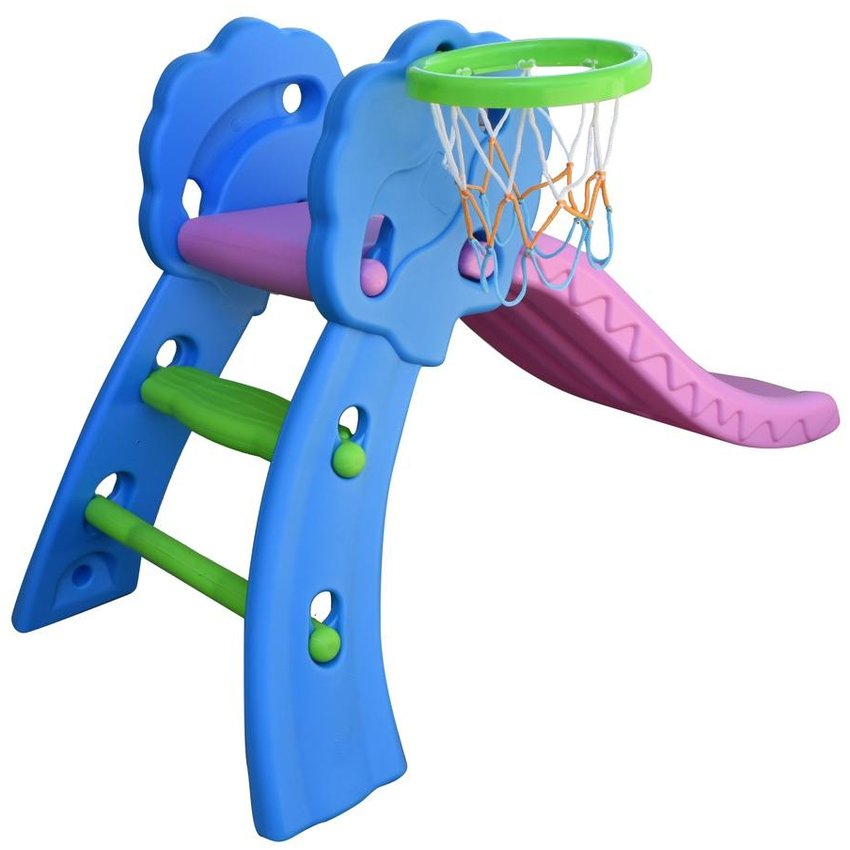 El resbalín + aro de basquetball marca Game Power incentiva la actividad física y ayuda a desarrollar y ejercita las habilidades motrices del niño.