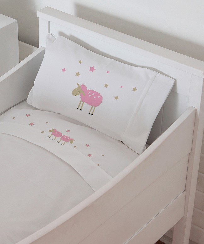 Sábana Ovejita Rosada, Sabanas Cuna, Ropa De Cuna, Cubreplumon Cuna, Cobertor Cuna, Set De Cuna