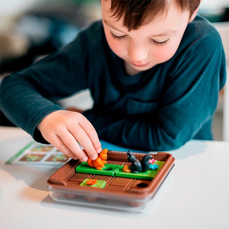 ¡Llega el invierno! ¿Puedes mover las ardillas y enterrar sus bellotas? Squirrels for Nuts es un rompecabezas deslizante con 60 desafíos para poner a prueba tus habilidades. Contiene 1 tablero de juego 9 piezas de plástico y un folleto con 60 desafíos y soluciones.